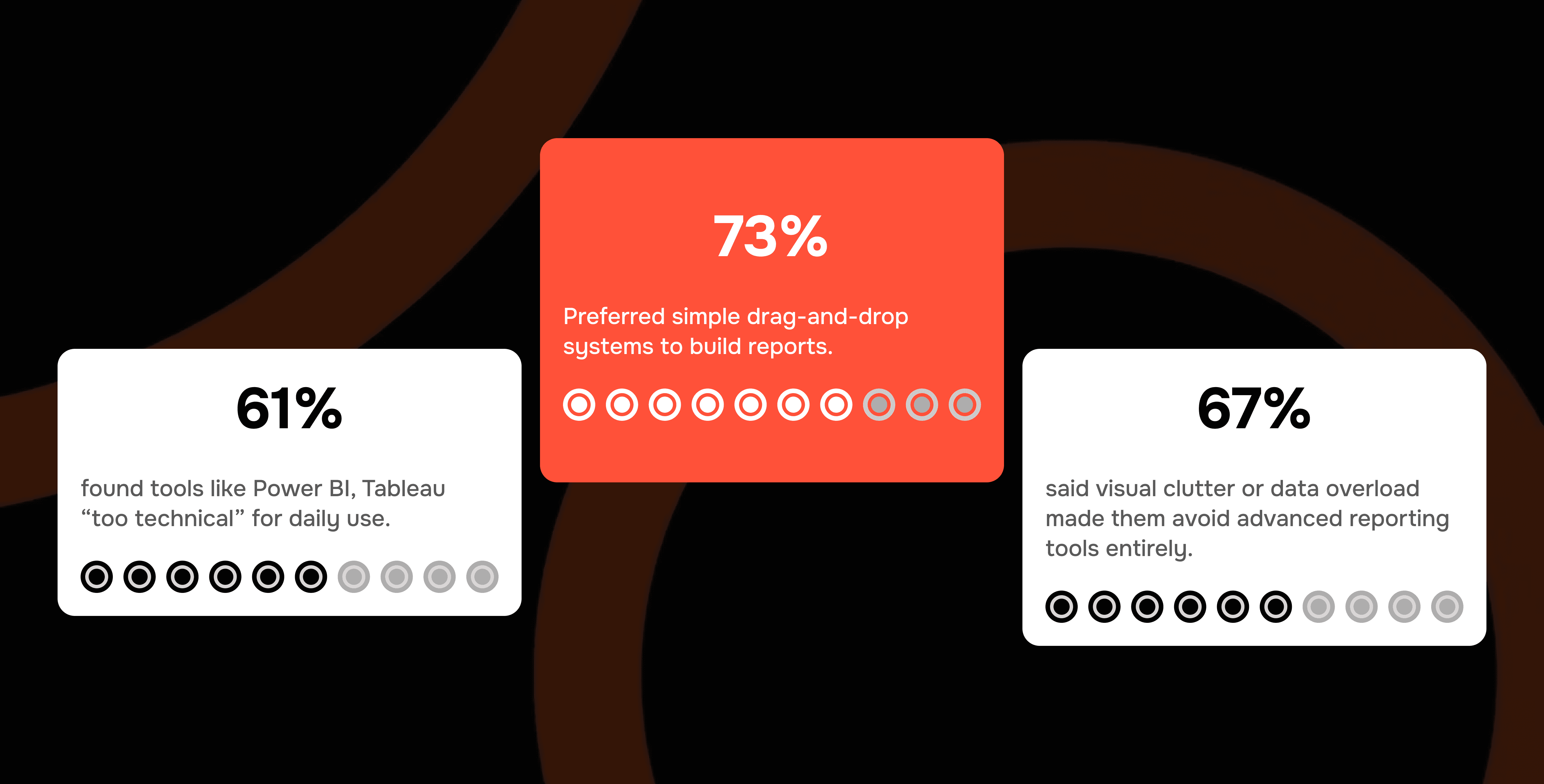 67% said visual clutter or data overload made them avoid advanced reporting tools entirely.