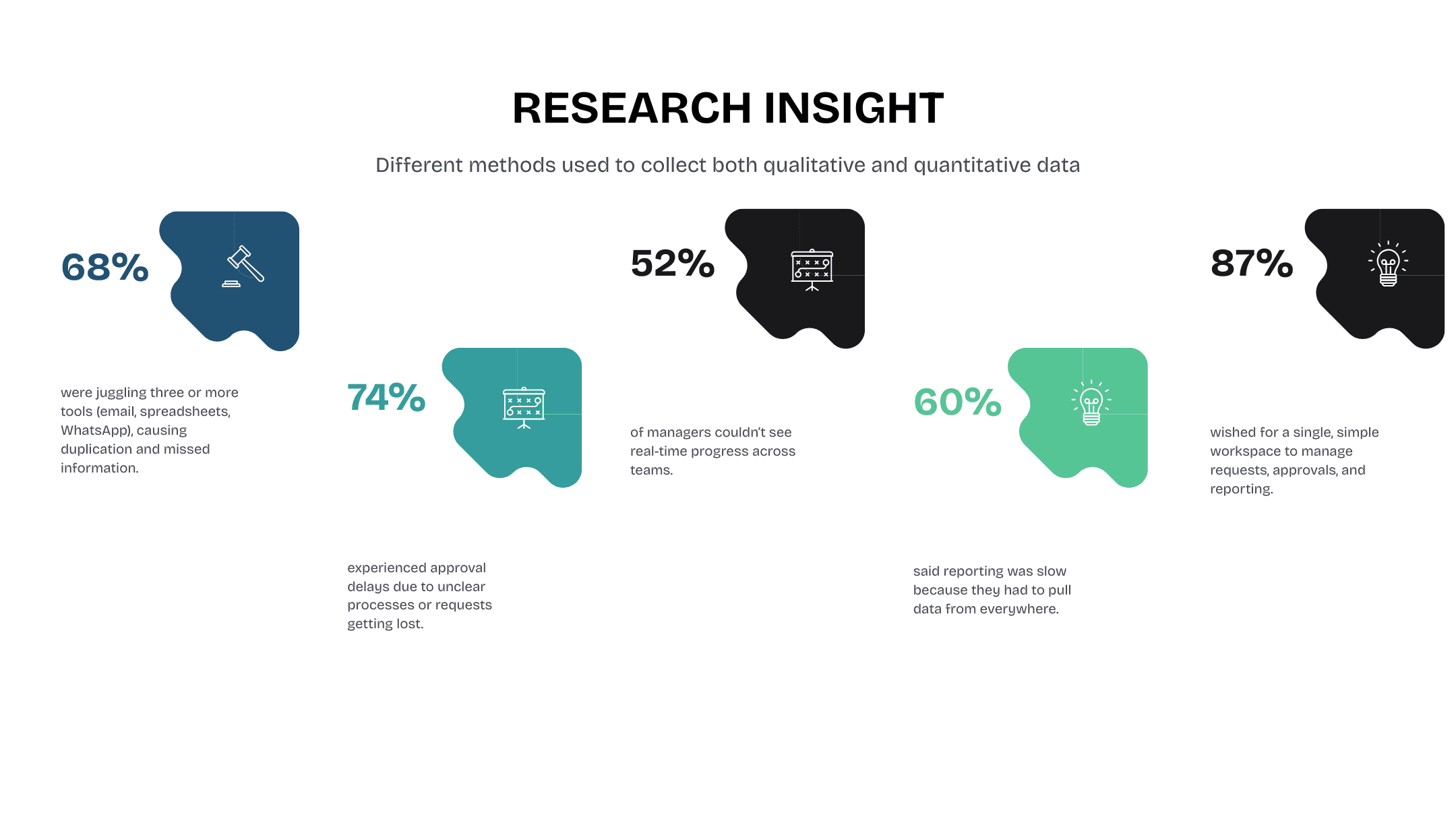 Managers had no centralized dashboard to monitor progress, leading to delayed decisions; a pain point echoed by 74% of users interviewed. in my organization.